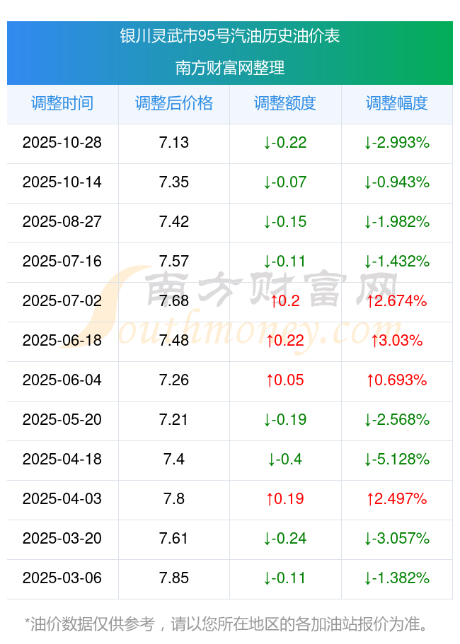 銀川靈武市95號汽油油價(jià)今日價(jià)格