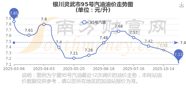 銀川靈武市95號汽油歷史油價(jià)走勢圖