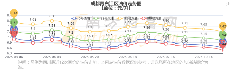 成都青白江區(qū)11月10日0號(hào)柴油歷史油價(jià)調(diào)整走勢(shì)圖
