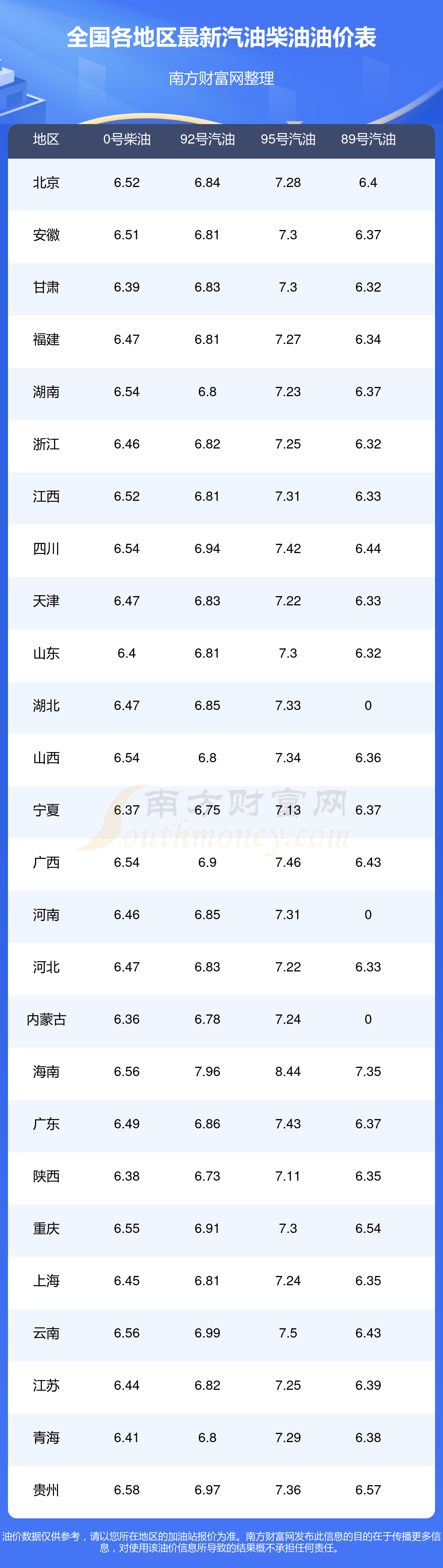 油價數(shù)據(jù)僅供參考,請以您所在地區(qū)的各加油站報價為準(zhǔn)。