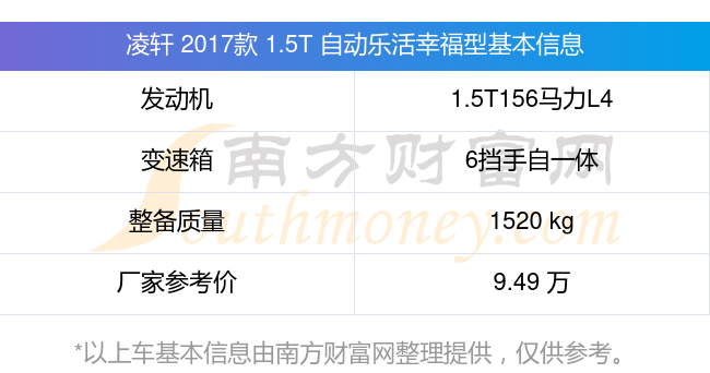 凌軒 2017款 1.5T 自動樂活幸福型動力方面,搭載的是一臺1.5T156馬力L4渦輪增壓發(fā)動機,匹配6擋手自一體自動檔變速箱,燃料形式為汽油,常規(guī)整備質(zhì)量1520kg,廠家參考價9.49萬元。