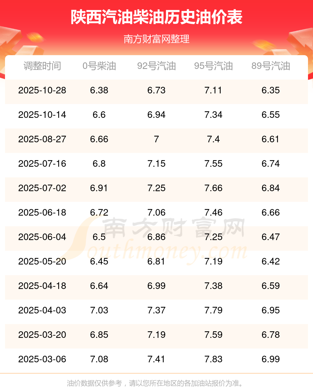 2025年陜西汽油價(jià)格一覽表
