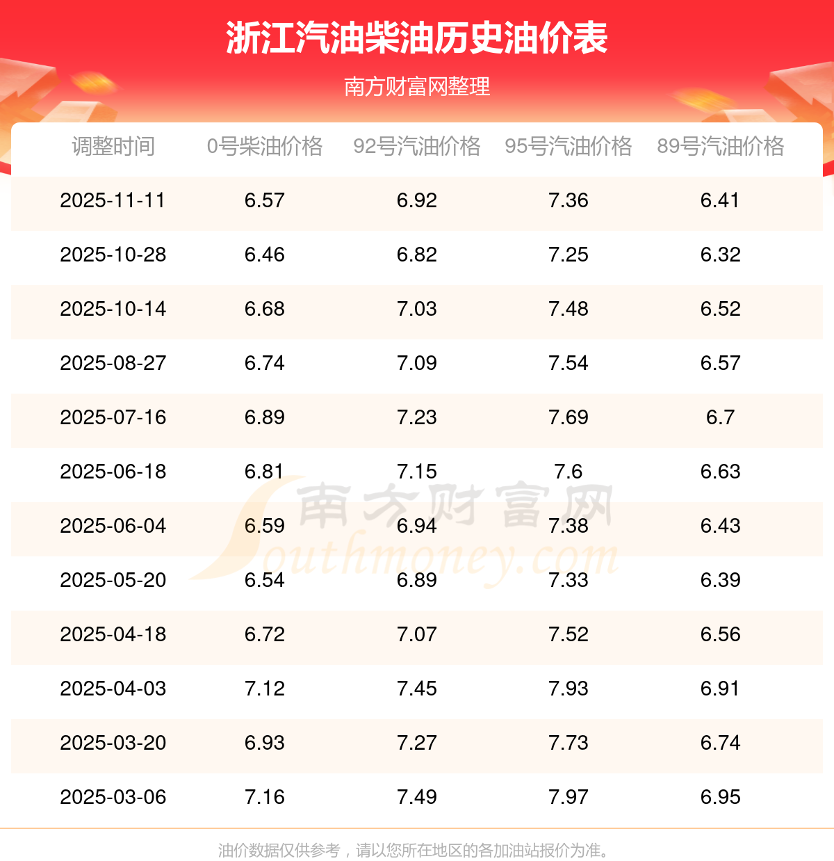 2025年浙江汽油價(jià)格一覽表
