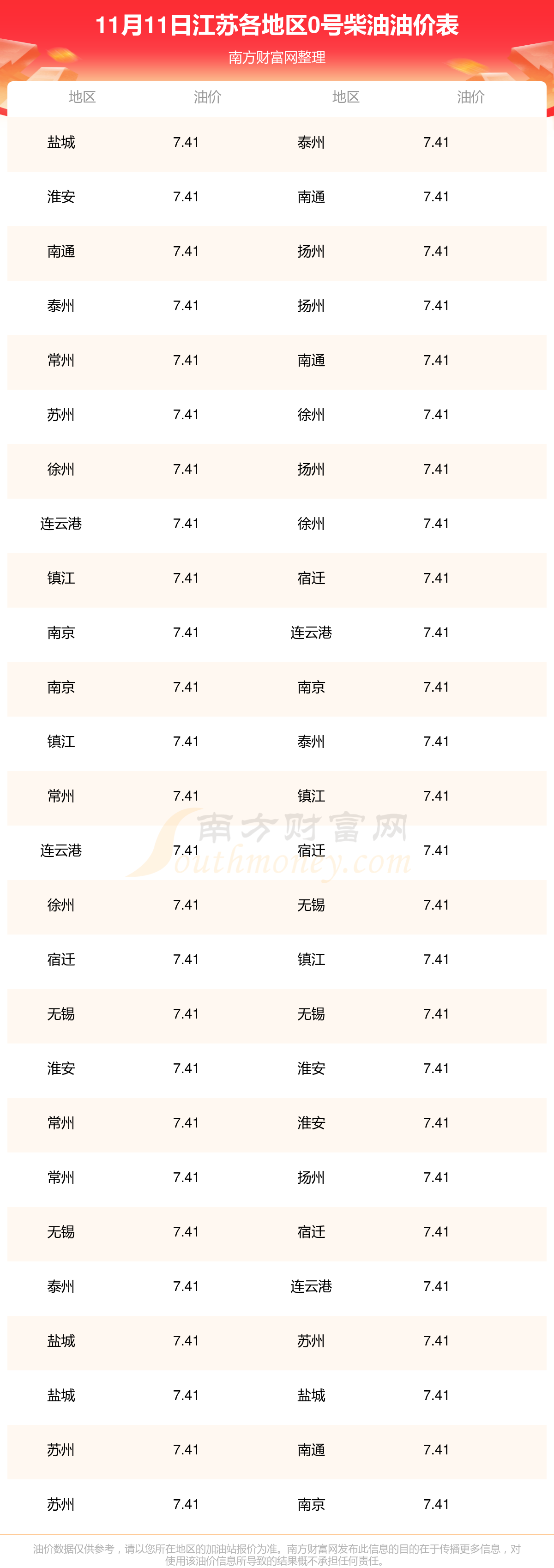 2025年11月11日江蘇0號柴油最新價格一覽表