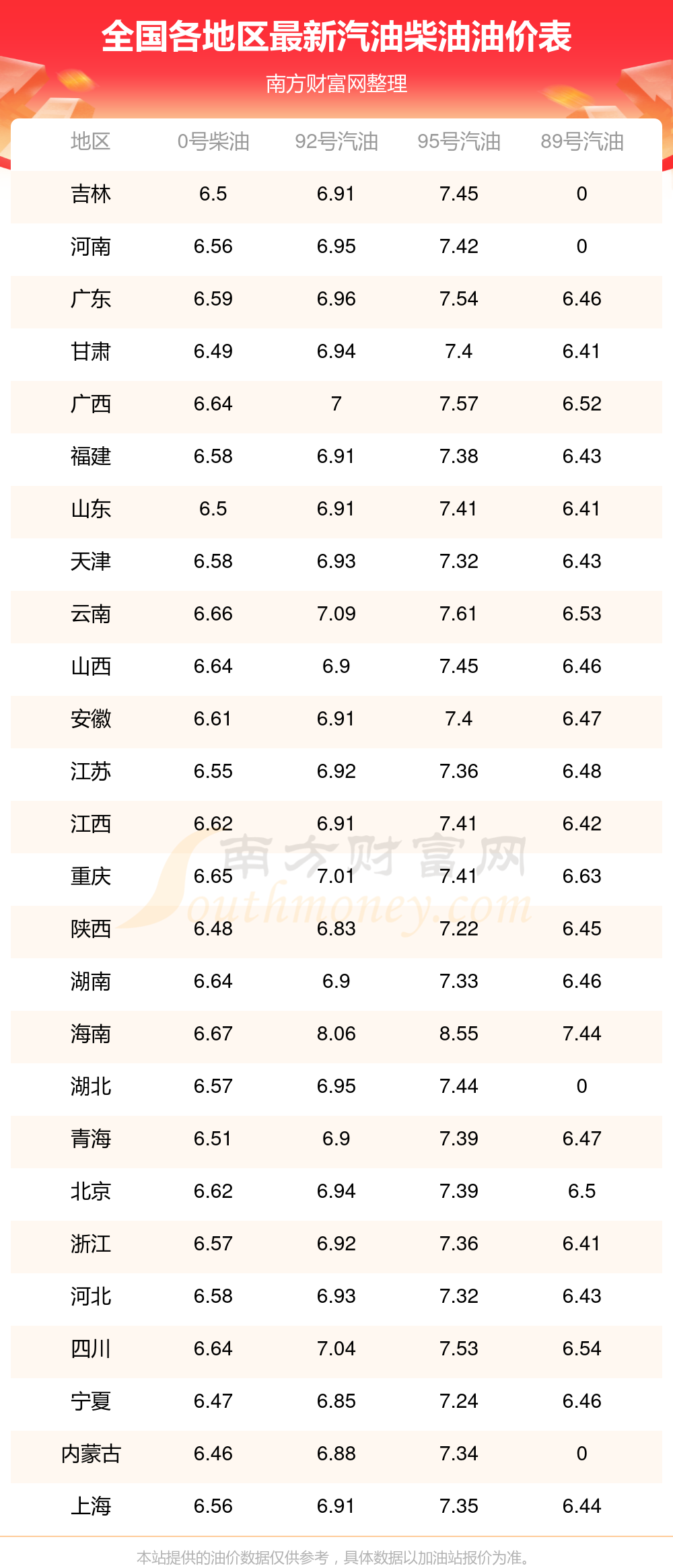 2025年11月11日全國油價(jià)調(diào)整及最新汽油價(jià)格表