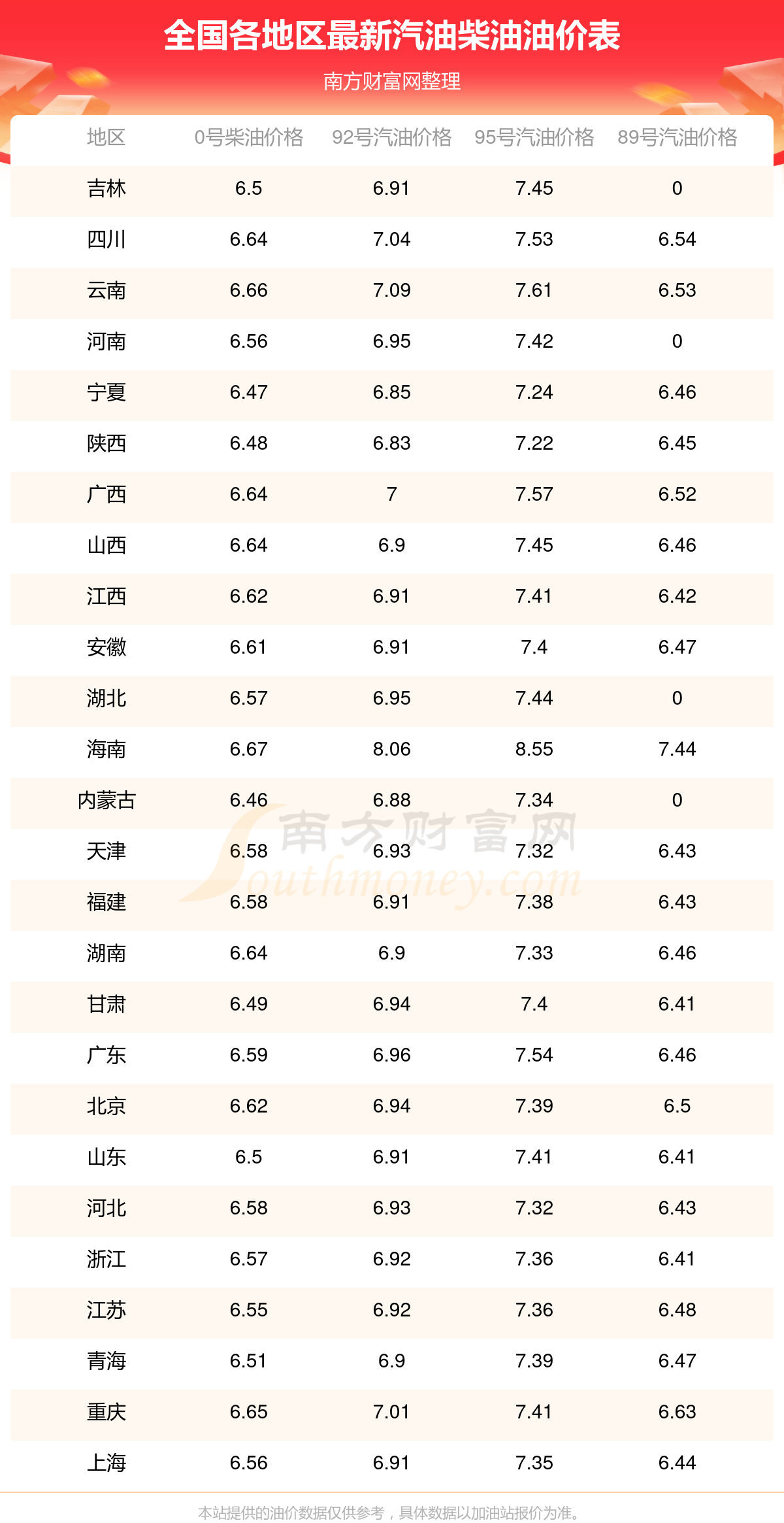 2025年最新汽油柴油價(jià)格一覽表