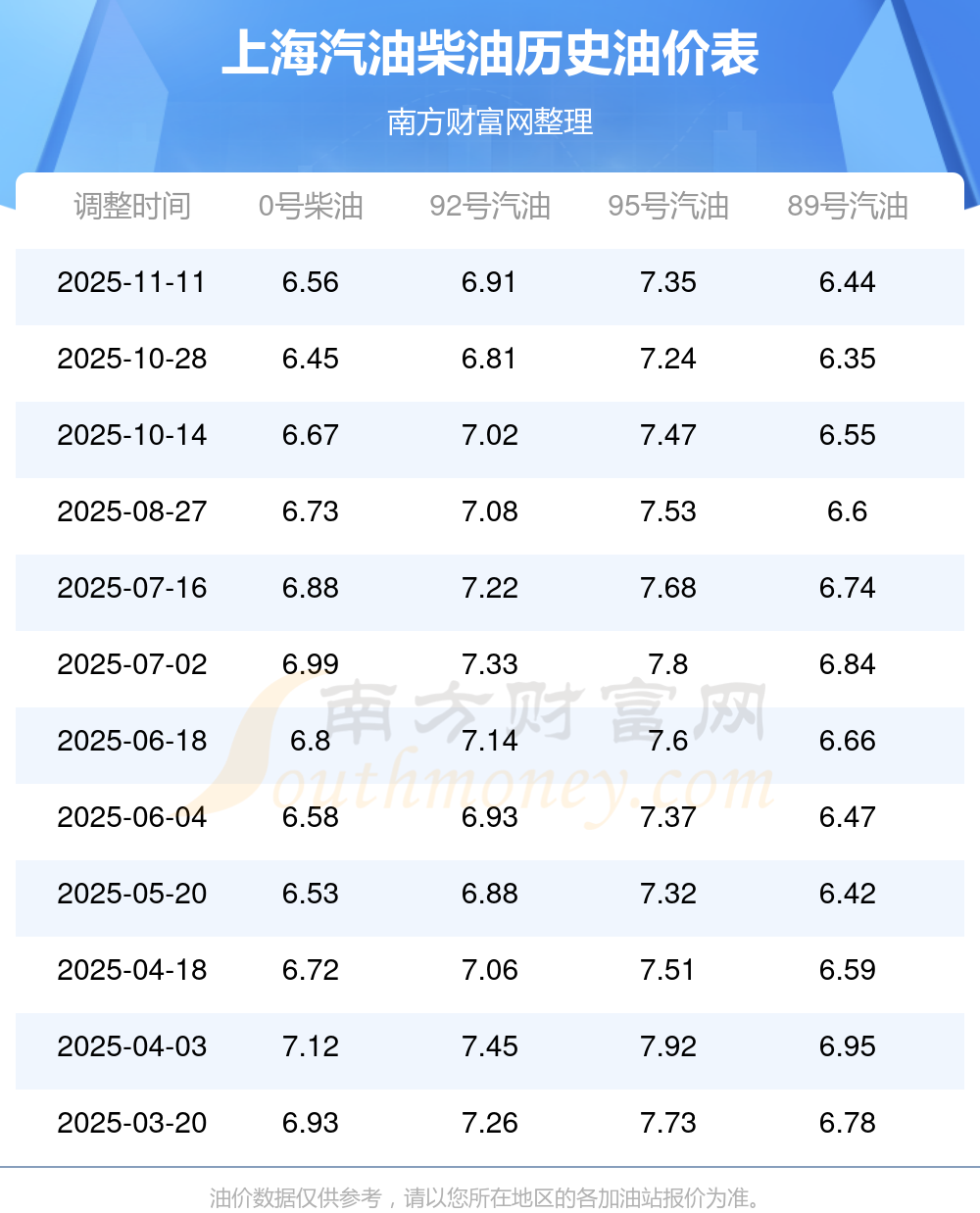 (11月11日)今日92號95號98號汽油價格