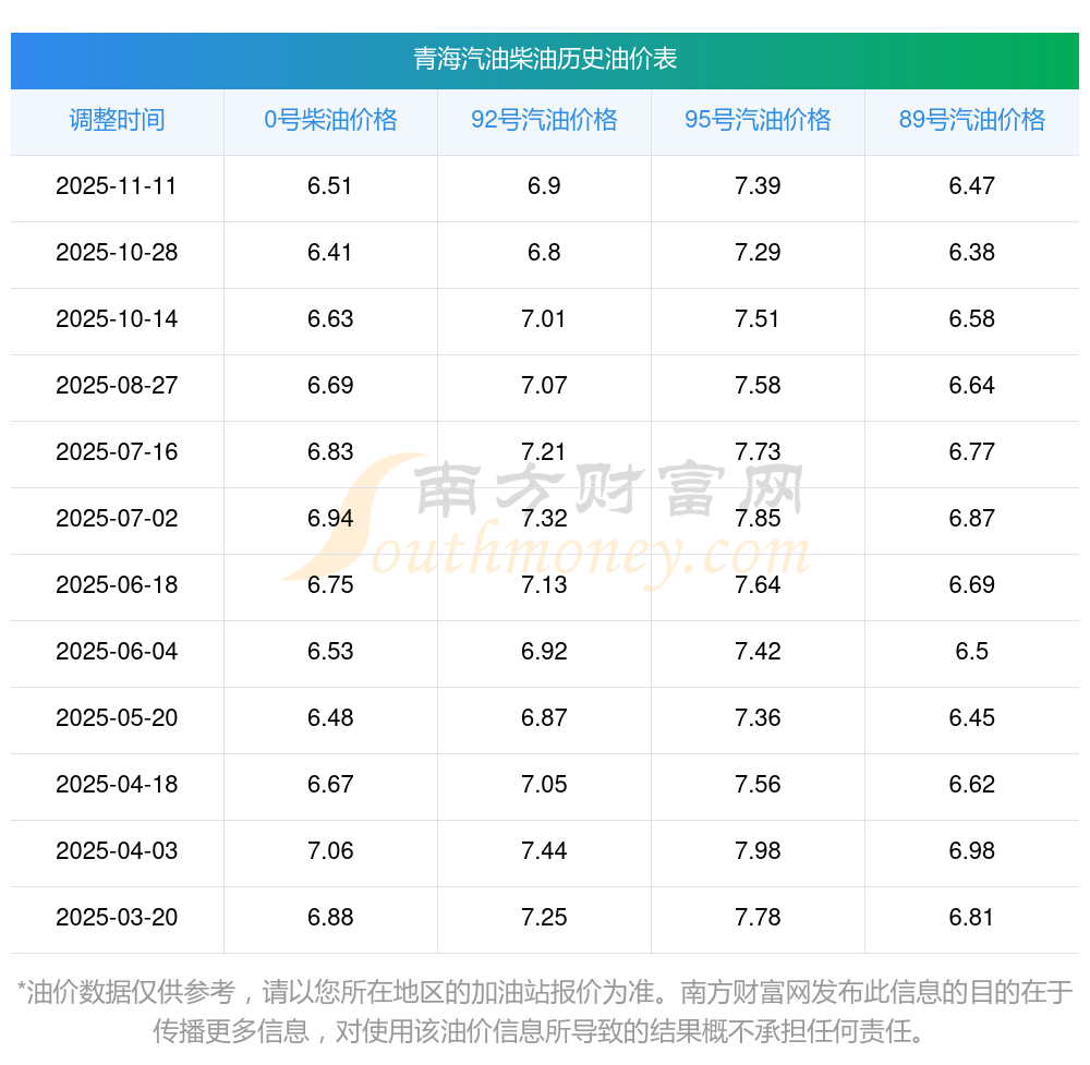 青海89號汽油油價(jià)調(diào)整表