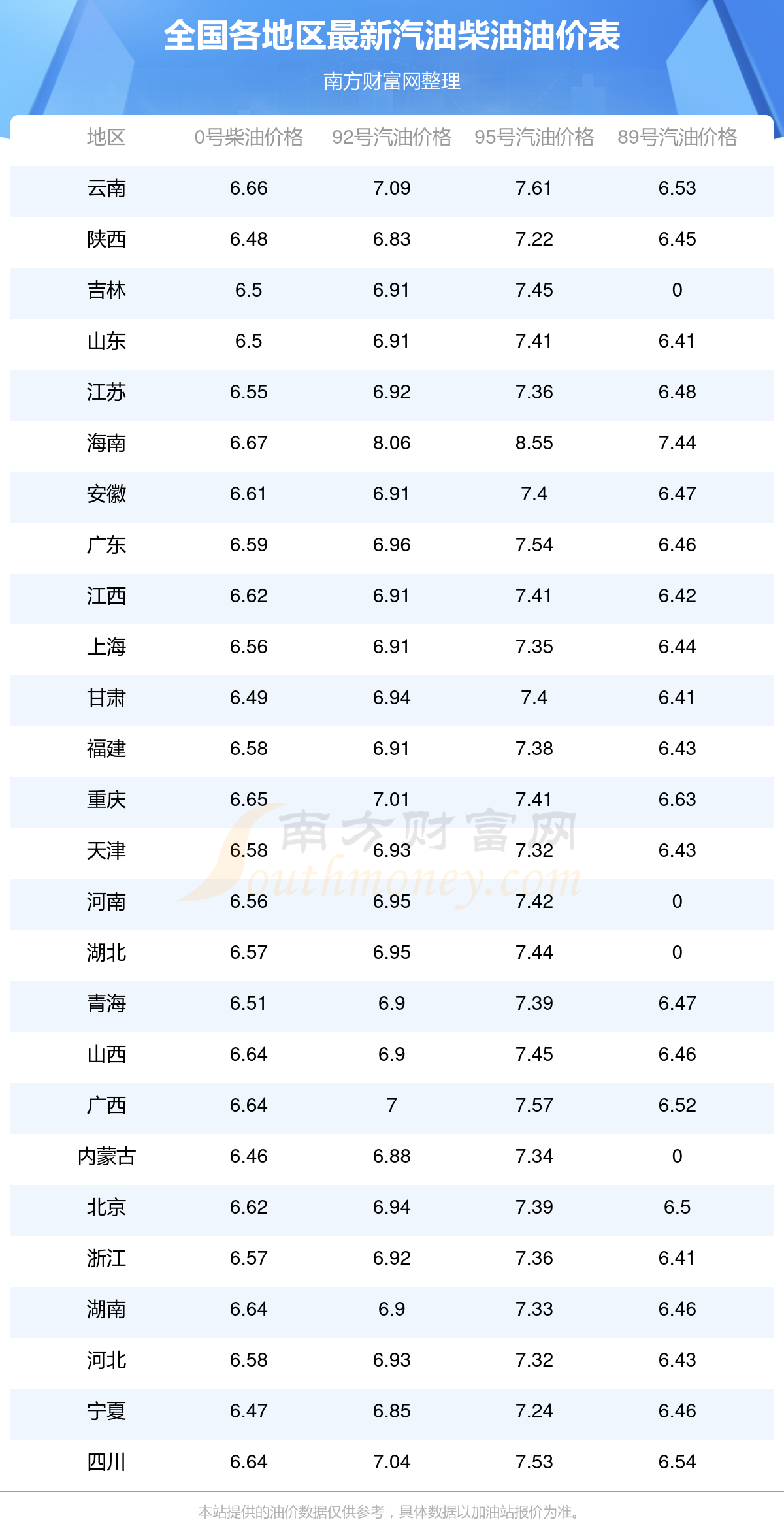 2025年11月11日全國(guó)油價(jià)調(diào)整及最新汽油價(jià)格表