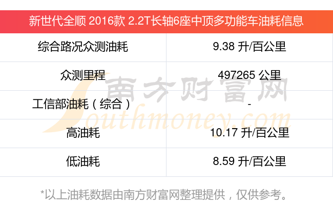根據(jù)車主實(shí)測(cè)數(shù)據(jù),該車型低油耗為8.59L/100km,高油耗為10.17L/100km,綜合路況眾測(cè)油耗為9.38L/100km,工信部綜合油耗為-L/100km。