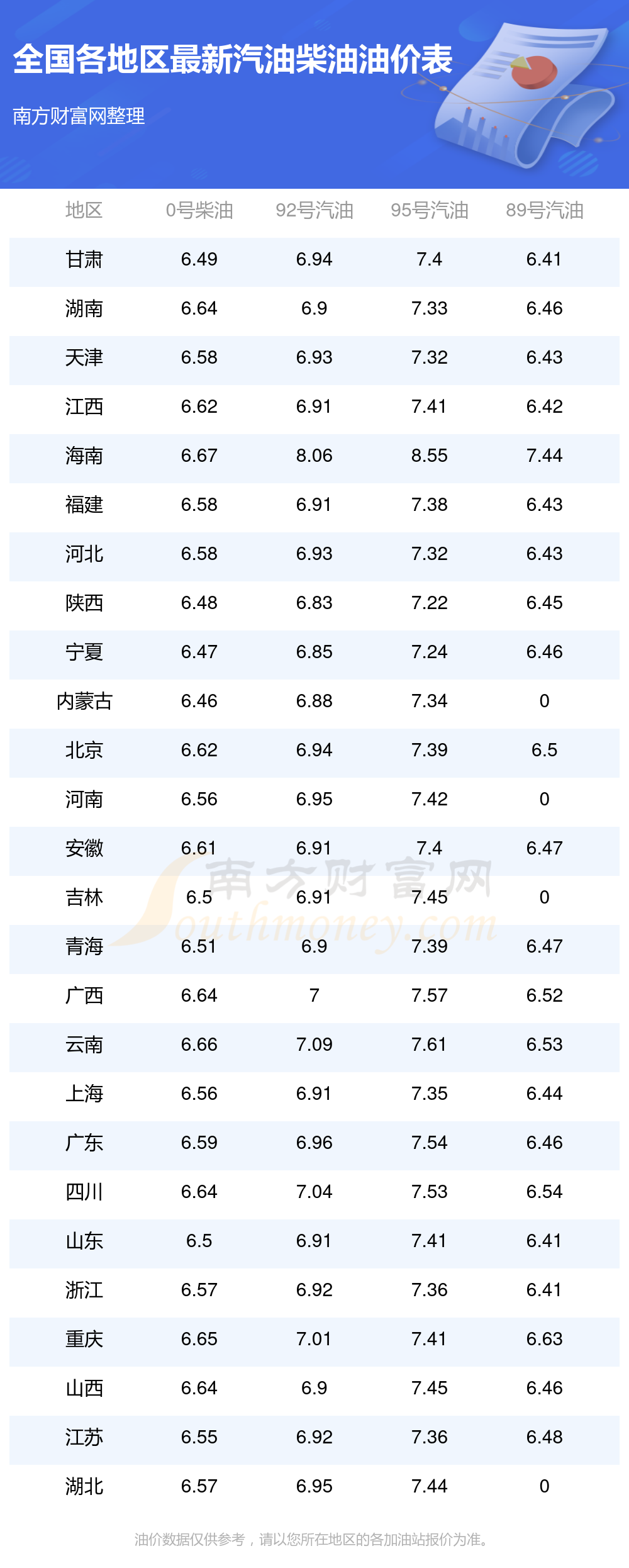 以上油價(jià)信息是當(dāng)前市場(chǎng)上最新油價(jià)信息,油價(jià)數(shù)據(jù)僅供參考,實(shí)際在售油價(jià)可能有小幅偏差,請(qǐng)以您所在地區(qū)的加油站實(shí)際售價(jià)為準(zhǔn)。