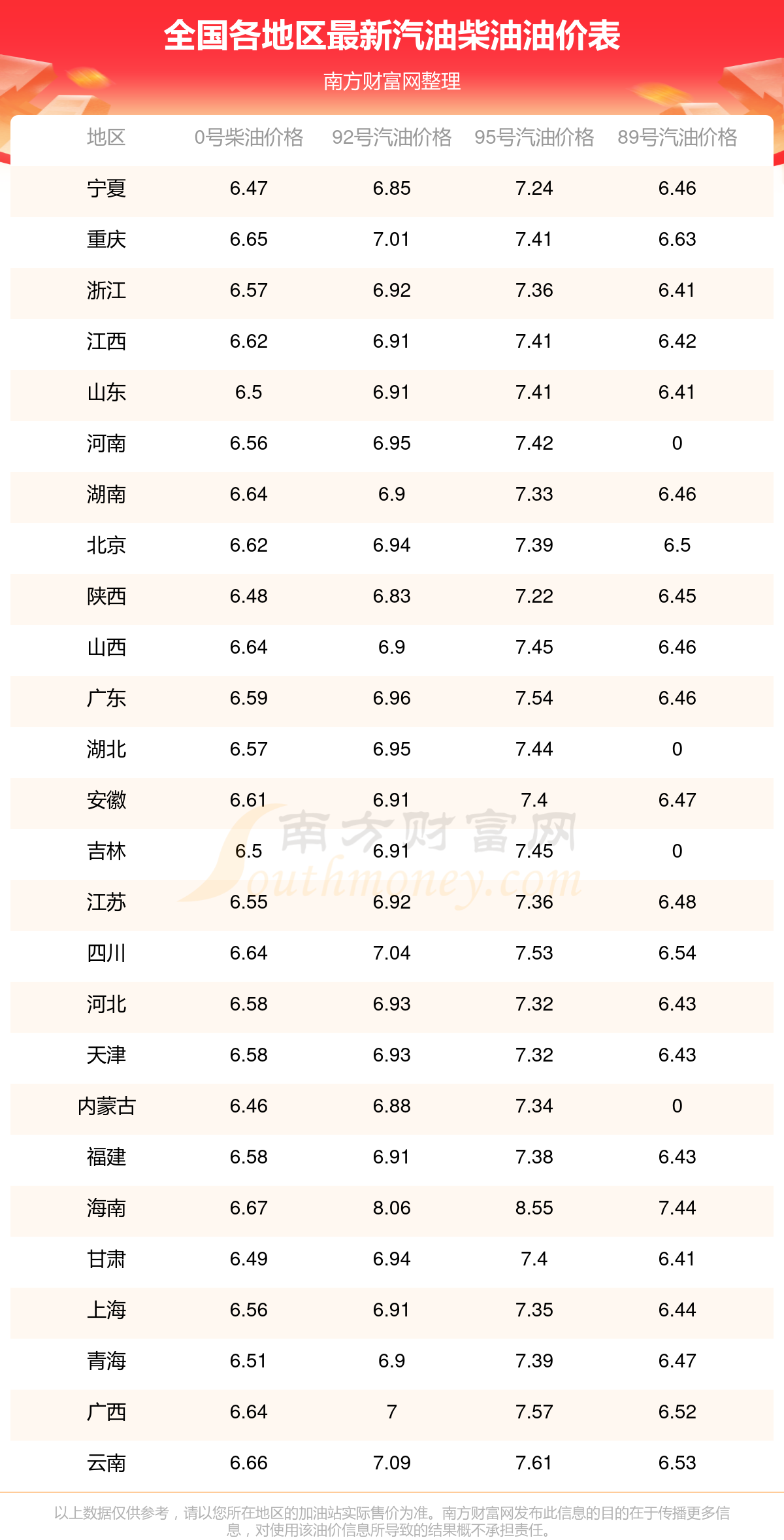 2025年11月11日全國油價調(diào)整及最新汽油價格表