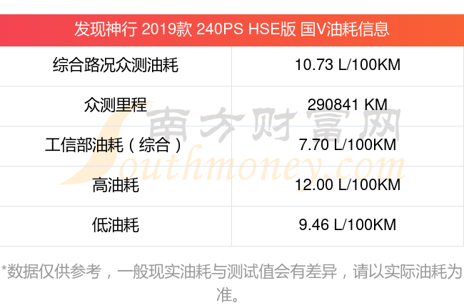 根據(jù)車主實測數(shù)據(jù),該車型低油耗為9.46L/100km,高油耗為12.00L/100km,綜合路況眾測油耗為10.73L/100km,工信部綜合油耗為7.70L/100km。