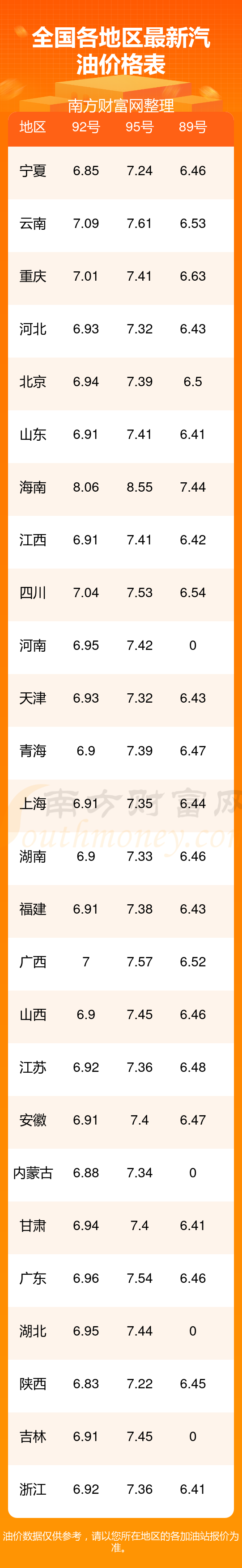 2025年11月11日全國各地油價調整及最新汽油價格表