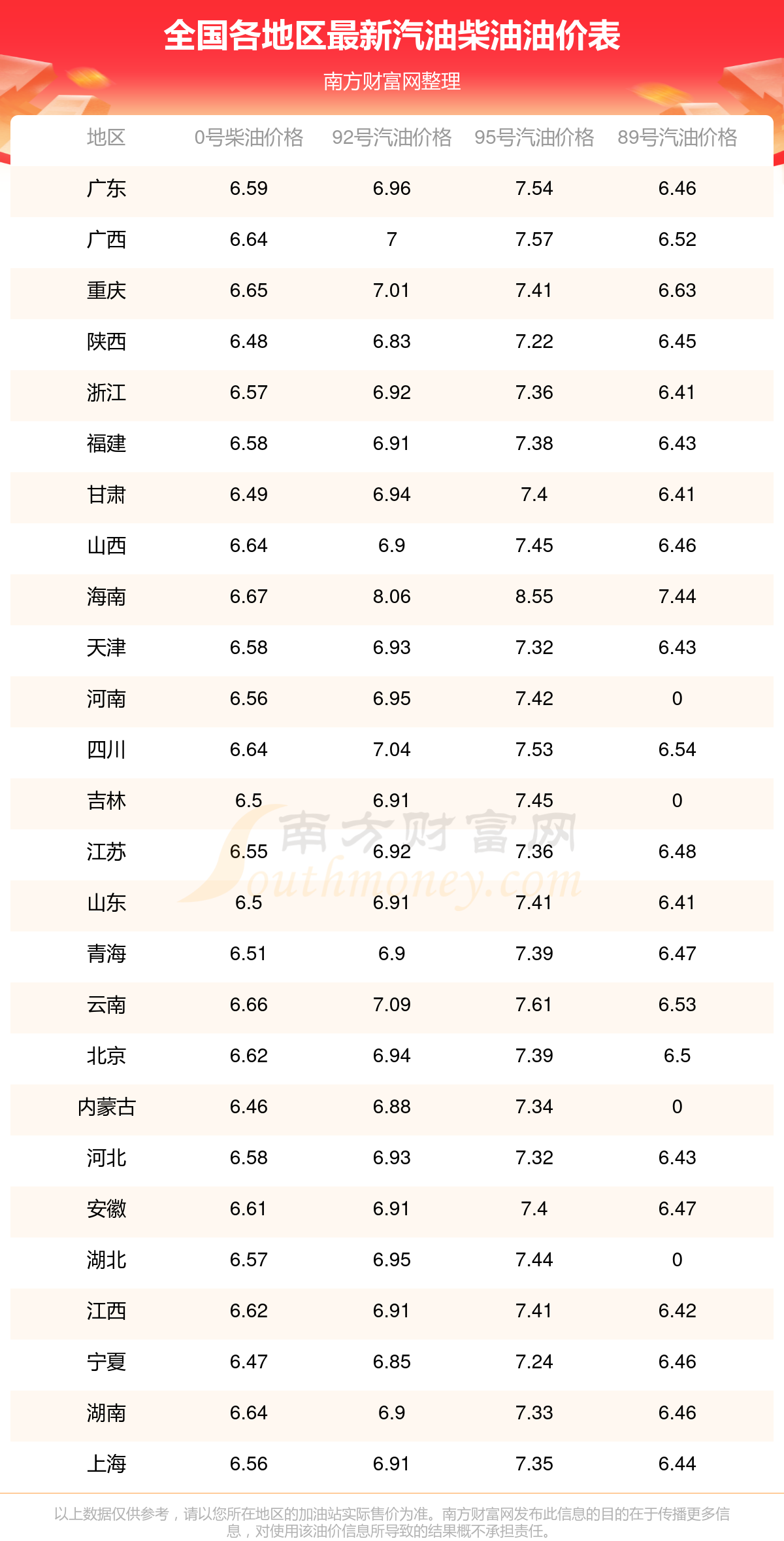 油價數(shù)據(jù)僅供參考,請以您所在地區(qū)的加油站報價為準(zhǔn)。南方財富網(wǎng)發(fā)布此信息的目的在于傳播更多信息,對使用該油價信息所導(dǎo)致的結(jié)果概不承擔(dān)任何責(zé)任。
