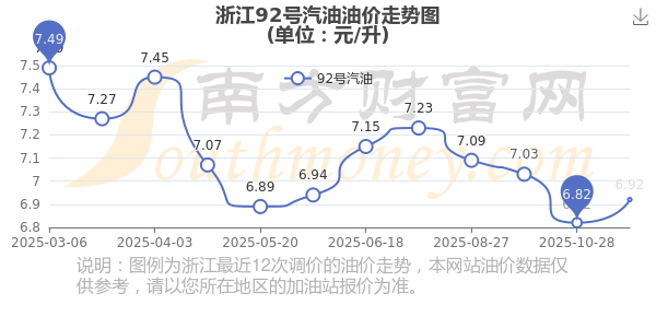 汽油價格調(diào)整最新消息:下一輪油價調(diào)整時間11月24日24時。11月11日浙江汽油、柴油每升的最新價格:92號汽油6.92元;95號汽油7.36元;89號汽油6.41元,上調(diào)了0.09;0號柴油6.57元,本輪油價的調(diào)整時間是11月11日。