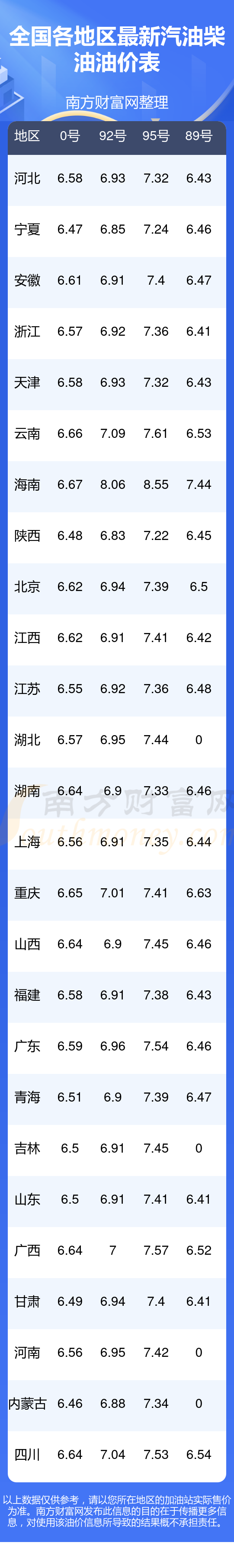2025年11月11日全國油價(jià)調(diào)整及最新汽油價(jià)格表