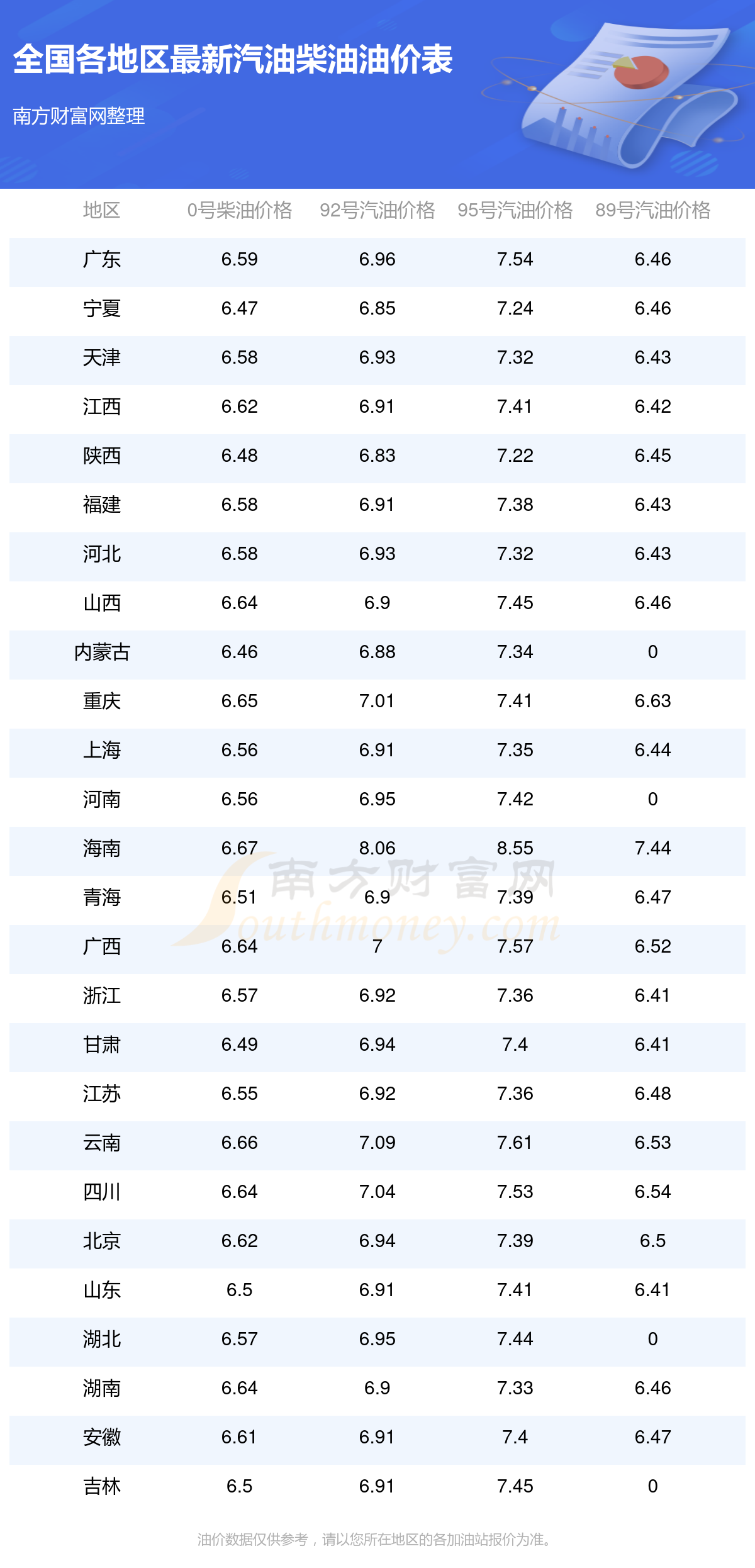 油價數(shù)據(jù)僅供參考,請以您所在地區(qū)的各加油站報價為準(zhǔn)。