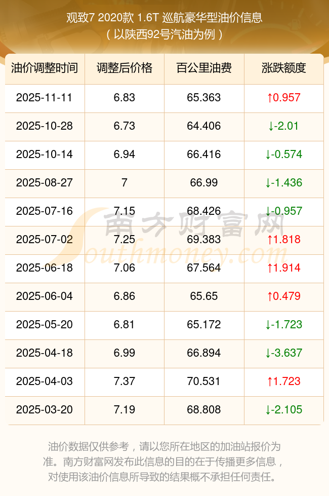 按照11月11日92號(hào)汽油最新調(diào)整價(jià)格6.83元/升來(lái)計(jì)算(以陜西為例),該車(chē)型百公里平均油費(fèi)為65.363元,按照上一輪10月28日調(diào)整價(jià)格6.73元/升來(lái)計(jì)算,百公里平均油費(fèi)為64.406元,對(duì)比上一輪多花0.957元,下一輪油價(jià)調(diào)整時(shí)間為11月24日24時(shí)。