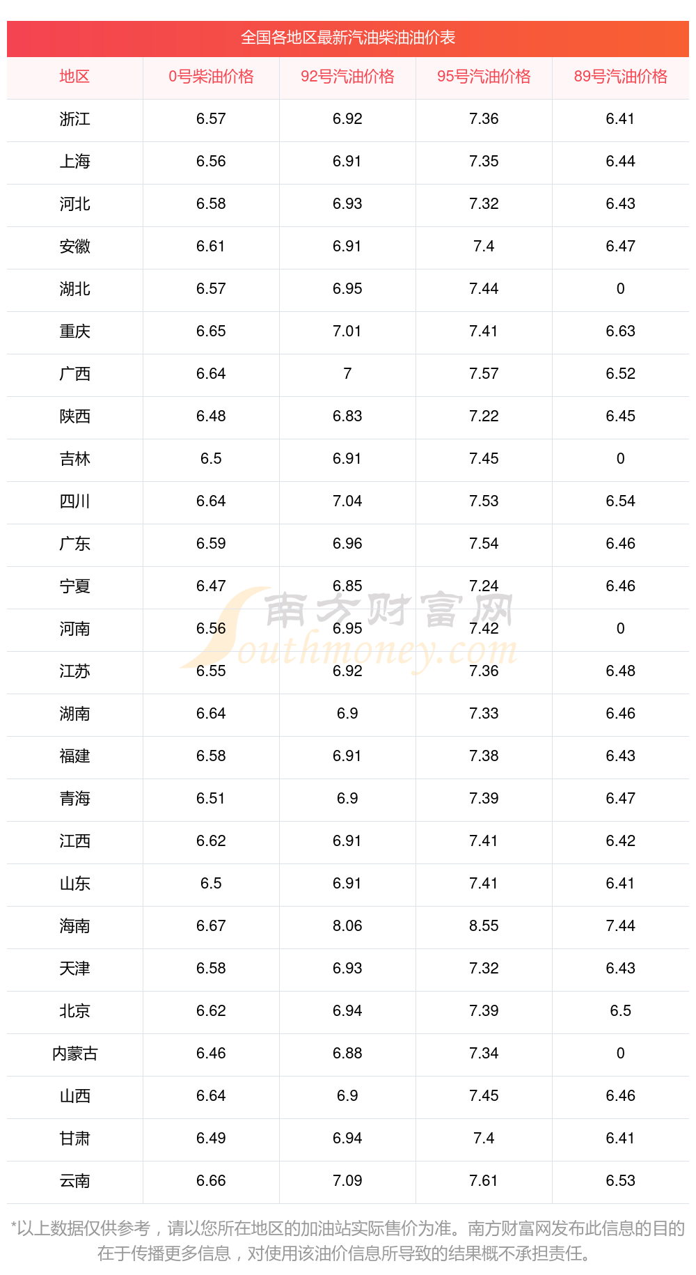 2025年11月11日全國油價(jià)調(diào)整及最新汽油價(jià)格表