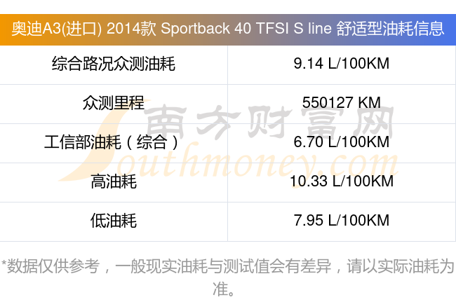 根據(jù)車主實測數(shù)據(jù),該車型低油耗為7.95升每百公里,高油耗為10.33升每百公里,綜合路況眾測油耗為9.14升每百公里,工信部綜合油耗為6.70升每百公里。