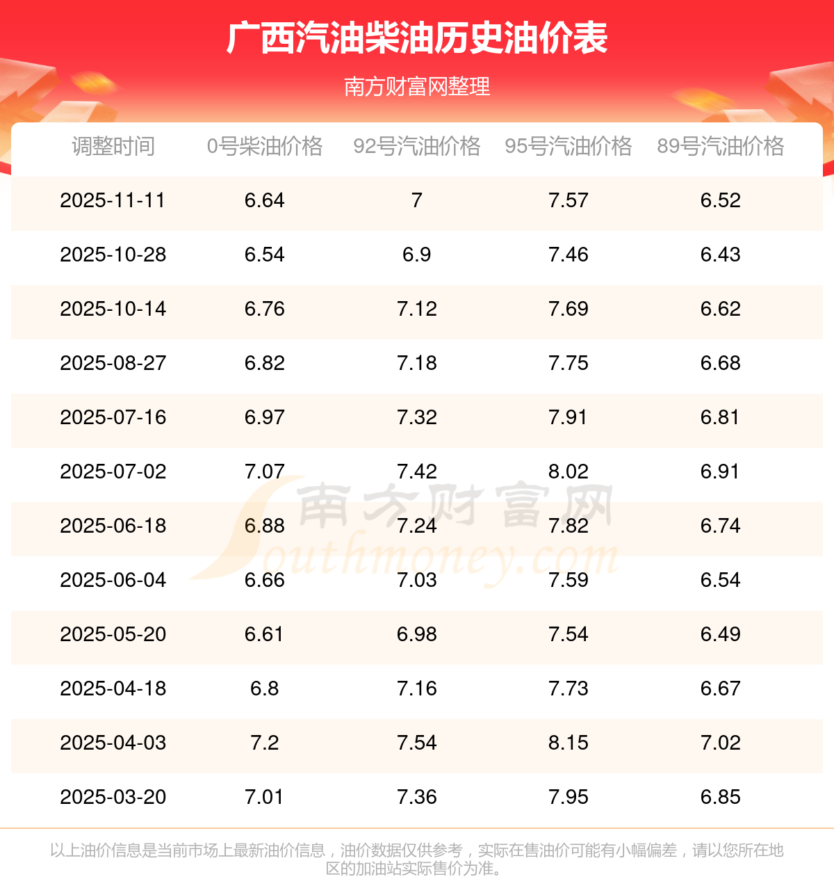 依照11月11日95號汽油最新調(diào)整價格7.57元/升來計算(以廣西為例),該車型百公里的平均油費是69.19元,依照上一輪10月28日調(diào)整價格7.46元/升來計算,百公里的平均油費是68.184元,對比上一輪多花1.005元,下一輪的油價調(diào)整時間11月24日24時。