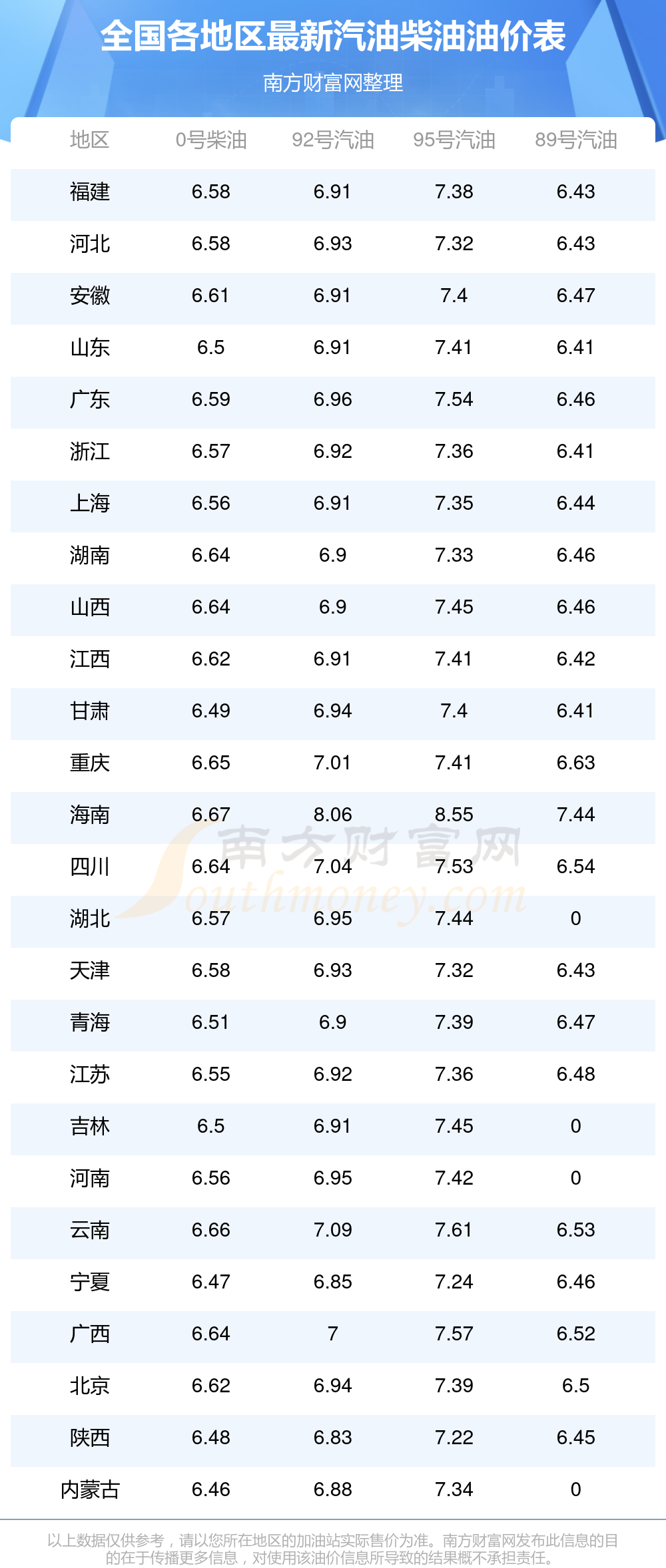 油價調(diào)整最新消息:本次油價的調(diào)整時間為11月11日,調(diào)整后全國92號汽油平均價格為7元每升,其中,最低的是陜西,6.83元每升,最高的是海南,8.06元每升。全國95號汽油平均價格為7元每升,其中,最低的是陜西,7.22元每升,最高的是海南,8.55元每升。全國0號柴油平均價格為:7元每升,其中,最低的是內(nèi)蒙古,6.46元每升,最高的是海南,6.67元每升。全國89號汽油平均價格為7元每升,其中,最低的是浙江,6.41元每升,最高的是海南,7.44元每升。下一輪汽油價格調(diào)整時間11月24日24時,距離現(xiàn)在還有13.61天。