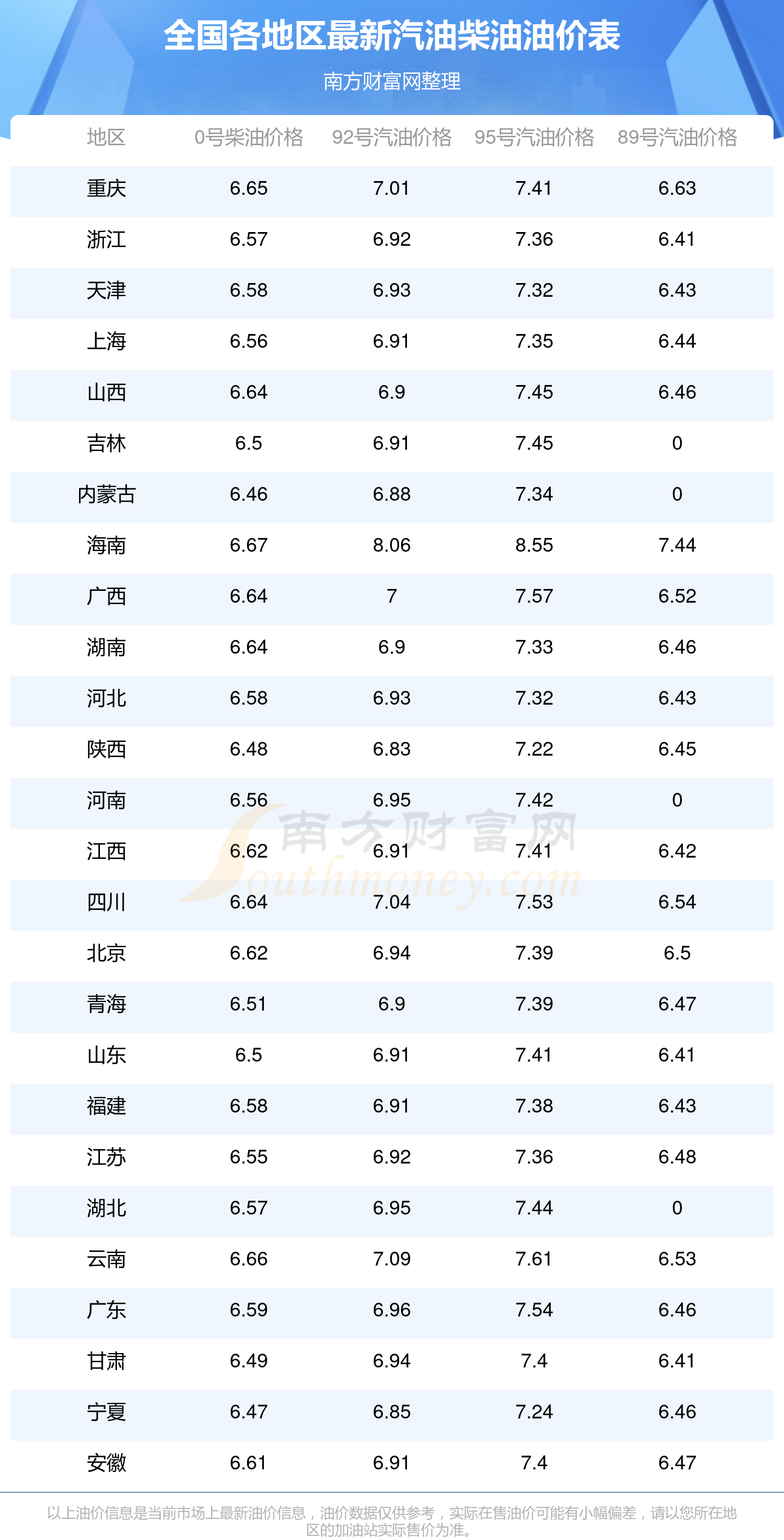 油價(jià)數(shù)據(jù)僅供參考,請(qǐng)以您所在地區(qū)的各加油站報(bào)價(jià)為準(zhǔn)。