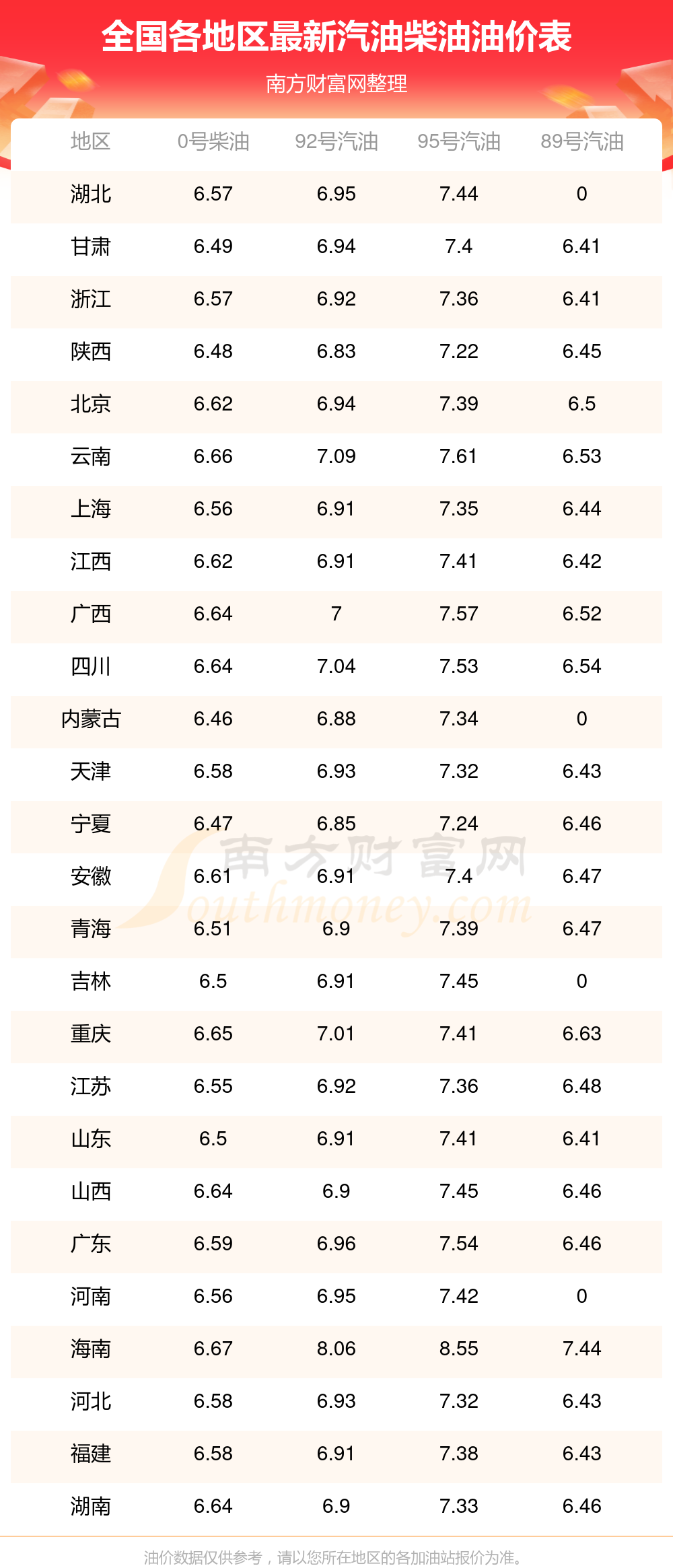2025年11月11日全國油價調(diào)整及最新汽油價格表