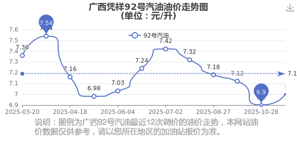 11月11日廣西憑祥汽油、柴油每升的價格是多少?詳情如下:95號汽油為7.57元,升了0.11元;92號汽油為7元,升了0.1元;89號汽油為6.52元,升了0.09元;0號柴油為6.64元,升了0.1元,調整時間為11月11日。下一輪油價調整時間11月24日24時,距離現(xiàn)在還有13.59天。