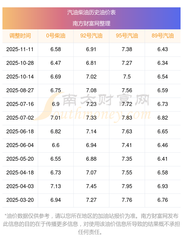 2025油價調(diào)整最新消息:山西95號汽油價格調(diào)整時間表(2025-11-11)