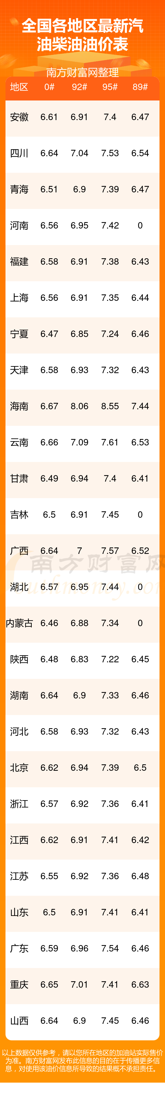 (11月11日)全國油價(jià)一覽表