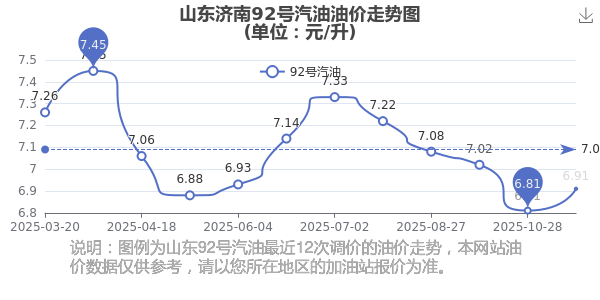 山東濟(jì)南2025年汽油價(jià)格調(diào)整走勢圖