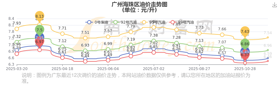11月11日廣州海珠區(qū)0號柴油歷史油價走勢圖
