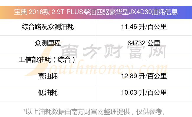 根據(jù)車主實測數(shù)據(jù),該車型低油耗為10.03升每百公里,高油耗為12.89升每百公里,綜合路況眾測油耗為11.46升每百公里。