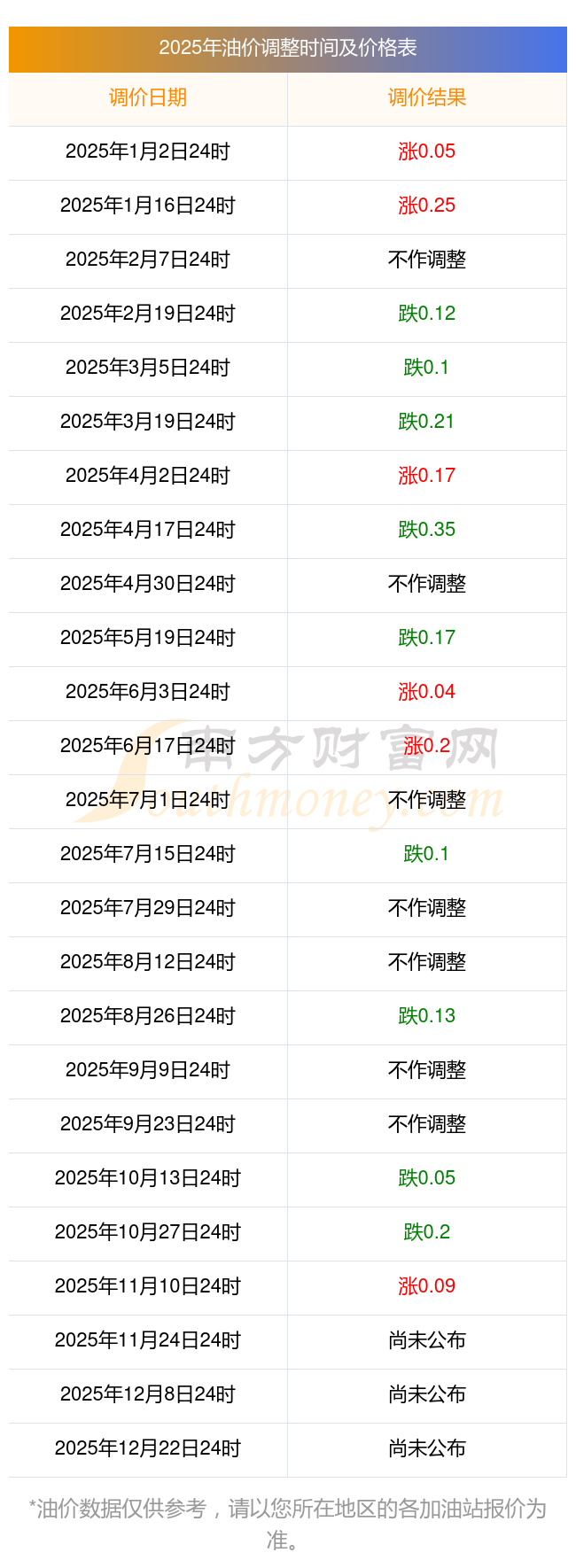 杭州上城區(qū)11月11日油價(jià)調(diào)整時(shí)間及價(jià)格表