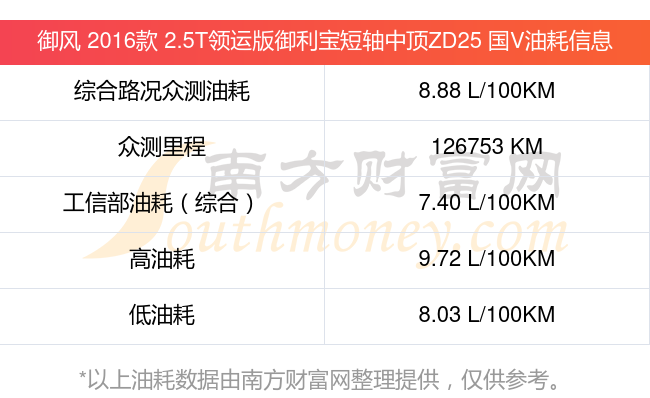 根據(jù)車主實(shí)測(cè)數(shù)據(jù),該車型低油耗為8.03L/100km,高油耗為9.72L/100km,綜合路況眾測(cè)油耗為8.88L/100km,工信部綜合油耗為7.40L/100km。