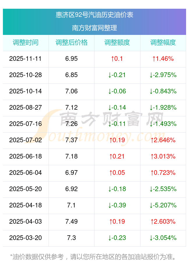 11月11日惠濟區(qū)92號汽油歷史油價一覽表