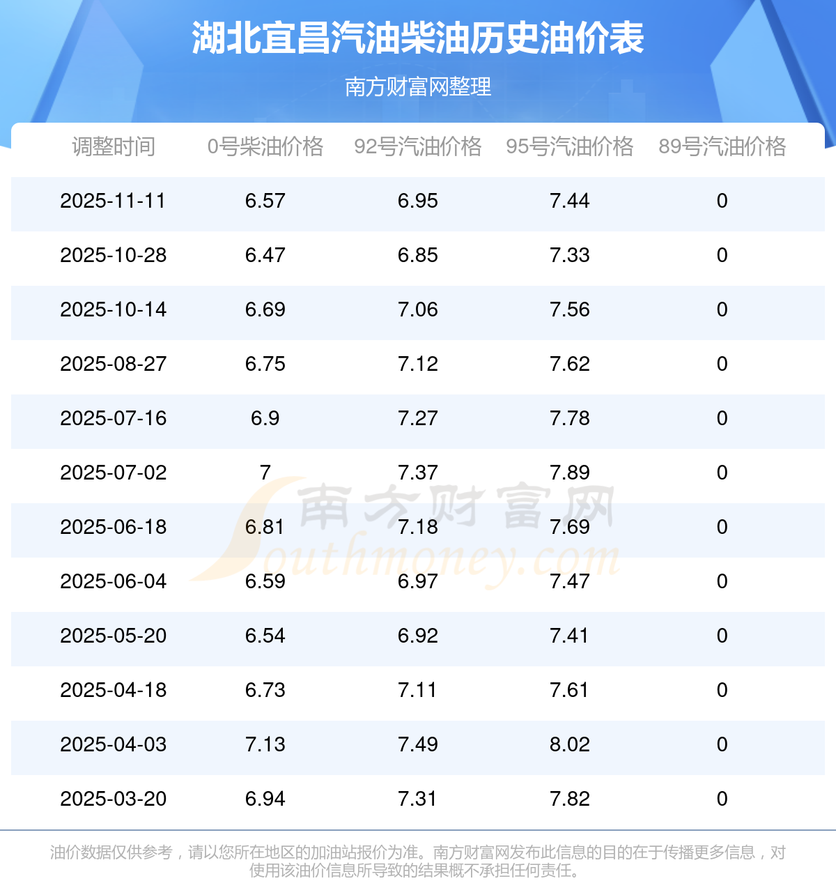 11月11日,湖北宜昌汽油、柴油每升的價(jià)格為11月11日調(diào)整后的價(jià)格,具體為:92號(hào)汽油為6.95元,增了0.1元,增幅達(dá)1.46%;95號(hào)汽油為7.44元,增了0.11元,增幅達(dá)1.5%;0號(hào)柴油為6.57元,增了0.1元,增幅達(dá)1.55%。
