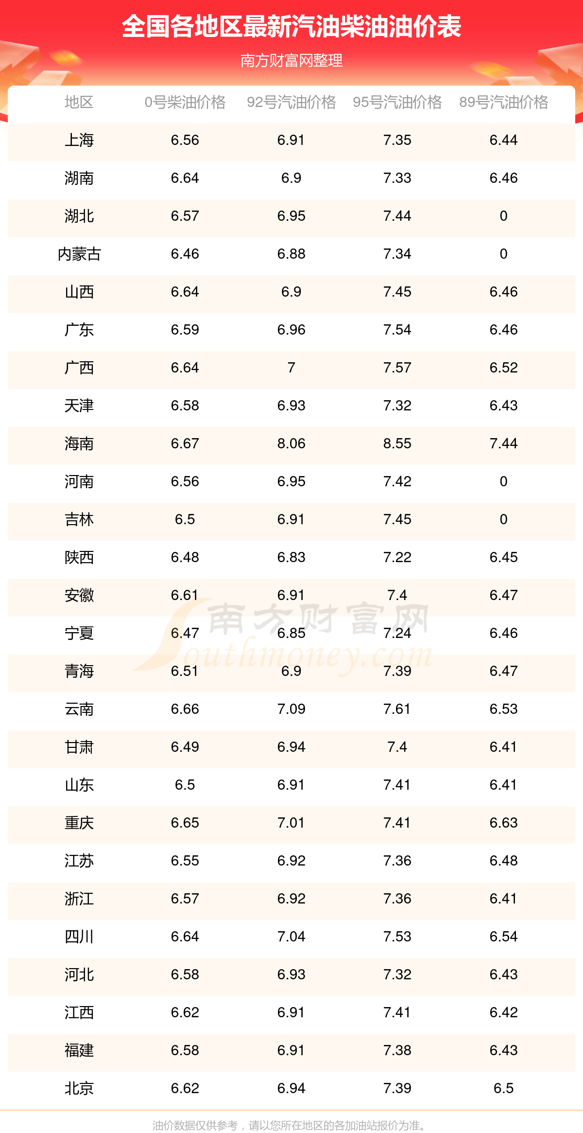 本站提供的油價數(shù)據(jù)僅供參考,具體數(shù)據(jù)以加油站報價為準。