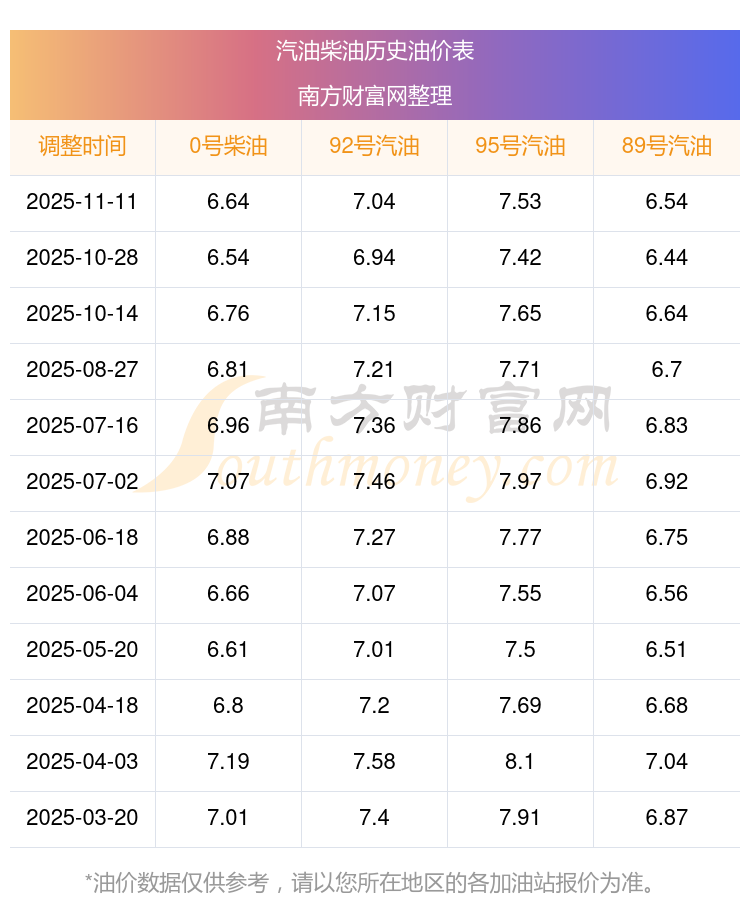 11月11日,宜賓95號汽油今日價格(調(diào)整時間為11月11日):7.53元每升,對比上次調(diào)整(10月28日)的油價7.42元每升,共漲了0.11元,漲幅達1.482%。下一輪油價調(diào)整時間11月24日24時,距離現(xiàn)在還有13.45天。