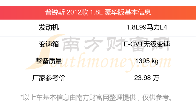 普銳斯 2012款 1.8L 豪華版動力上搭載的是一臺1.8L99馬力L4自然吸氣發(fā)動機,匹配E-CVT無級變速自動檔變速箱,燃料形式為油電混合,常規(guī)整備質(zhì)量1395kg,廠家參考價23.98萬元。