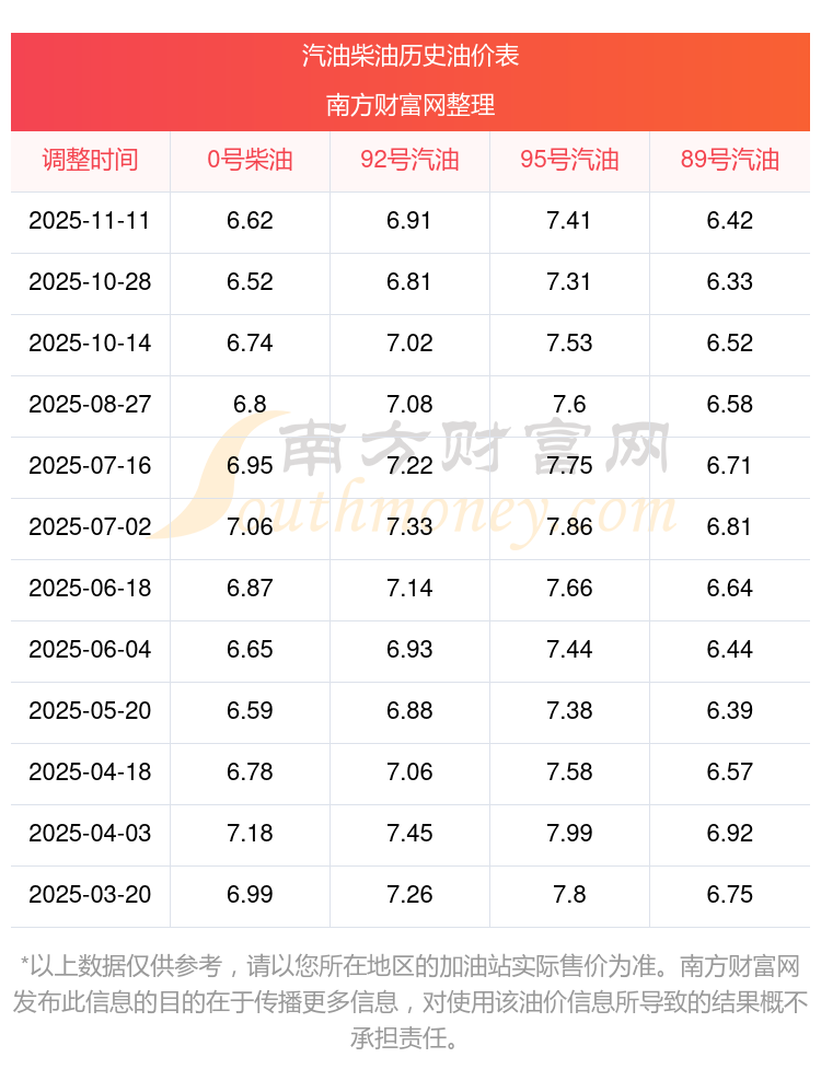 11月油價(jià)調(diào)整時(shí)間:11月10日、11月24日