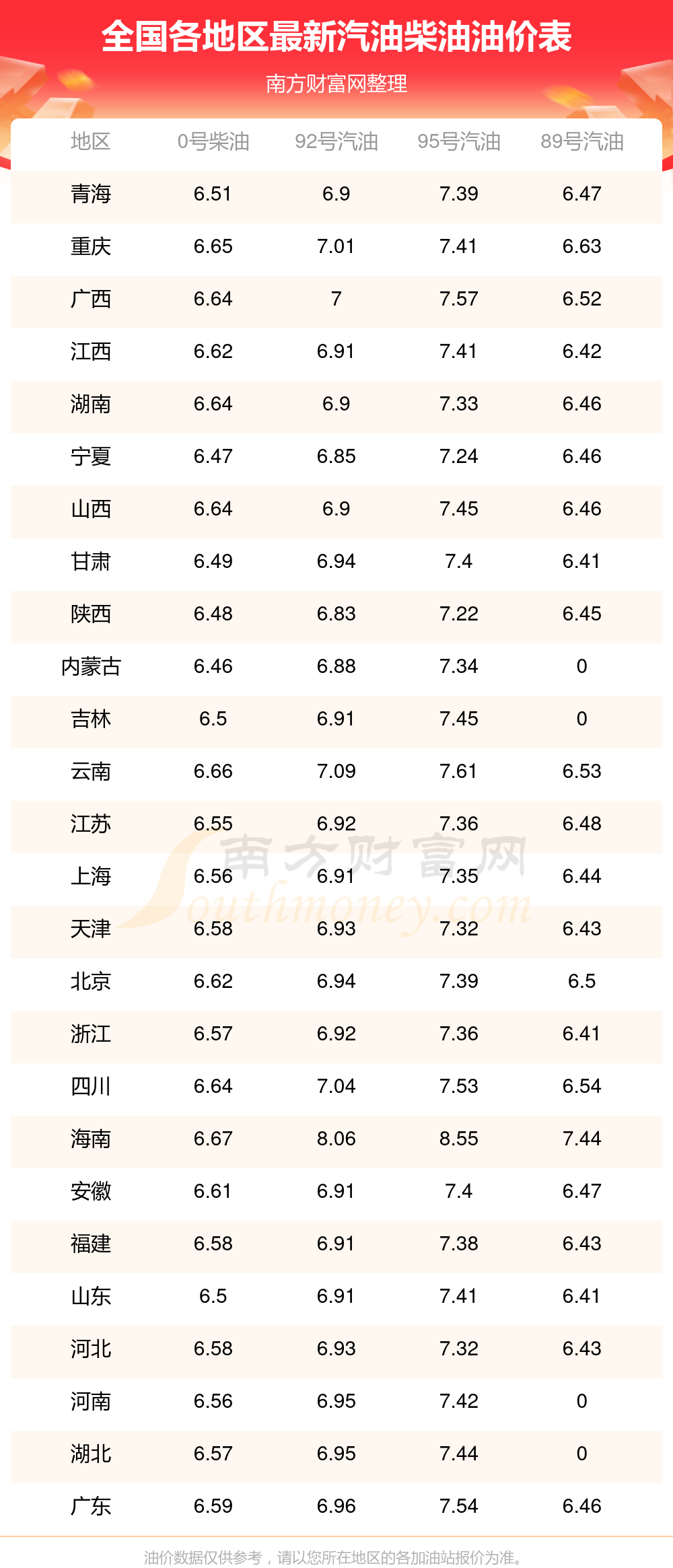 油價(jià)數(shù)據(jù)僅供參考,請(qǐng)以您所在地區(qū)的各加油站報(bào)價(jià)為準(zhǔn)。