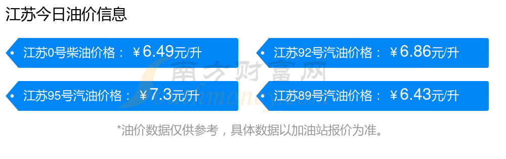 油價數(shù)據(jù)僅供參考,請以您所在地區(qū)的各加油站報價為準(zhǔn)。