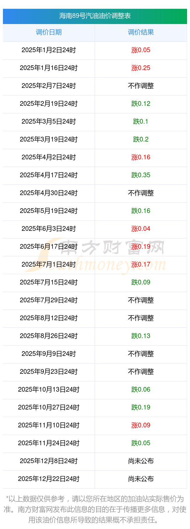 海南儋州2025年油價(jià)調(diào)整時(shí)間及最新價(jià)格表