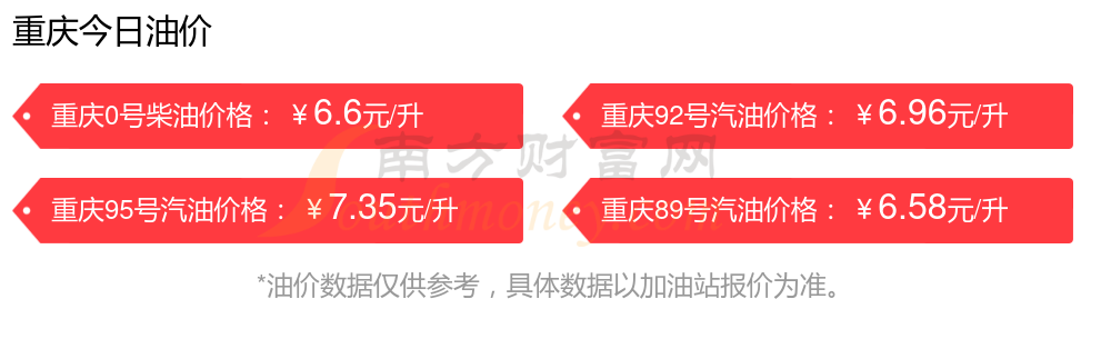 汽油價格調(diào)整最新消息:下一輪油價調(diào)整時間12月8日24時。重慶汽油、柴油12月3日每升最新價格為:92號汽油為6.96元;95號汽油為7.35元;89號汽油為6.58元,下跌了0.05;0號柴油為6.6元,調(diào)整時間為11月25日。