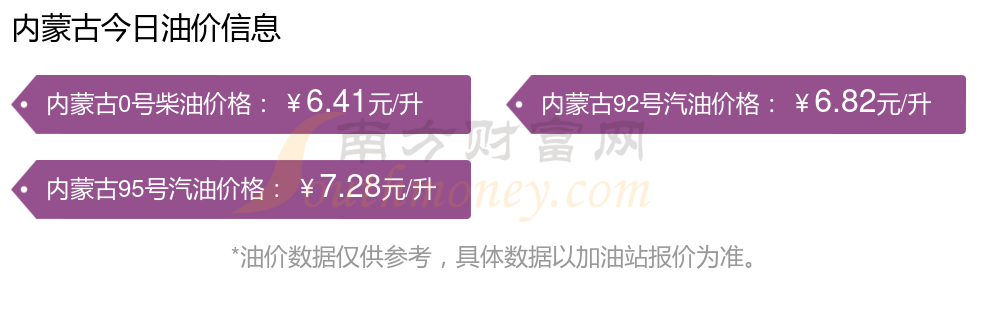 油價(jià)調(diào)整最新消息:呼倫貝爾汽油、柴油12月3日每升的價(jià)格為(油價(jià)調(diào)整時(shí)間是11月25日):92號(hào)汽油6.82元;95號(hào)汽油7.28元;0號(hào)柴油6.41元。呼倫貝爾下一輪油價(jià)調(diào)整時(shí)間12月8日24時(shí),距離現(xiàn)在還有5.38天。