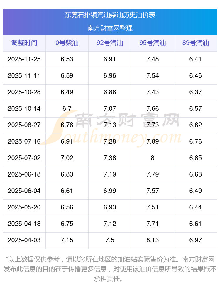 2025年東莞石排鎮(zhèn)汽油價(jià)格一覽表