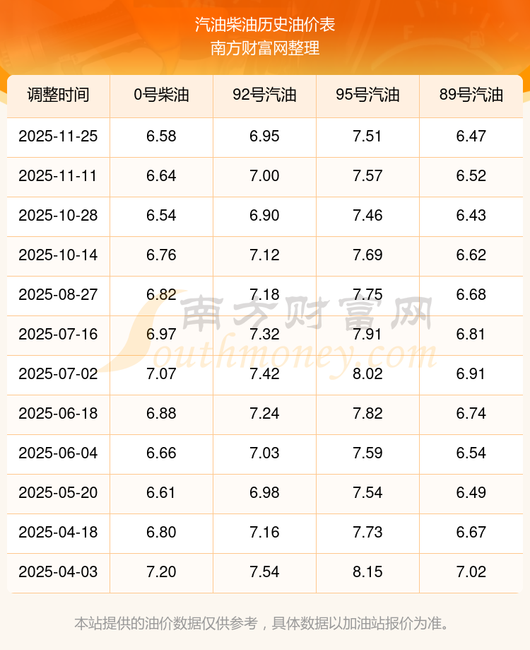 2025年92號汽油價格一覽表